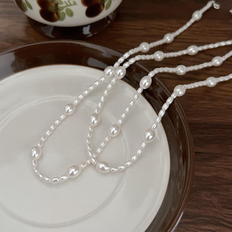 F廠-韓國韓版925純銀珍珠項鍊簡約網紅小紅書冷淡風間珠項鍊「B1166」25.08-2