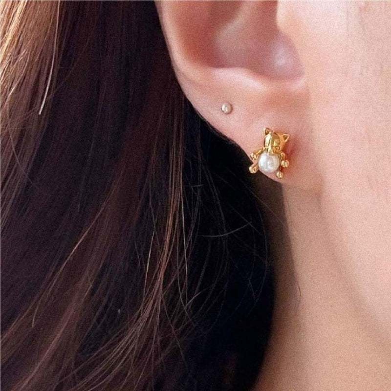 F廠-韓國韓版925純銀耳釘耳扣女小熊珍珠ins風小紅書耳環耳飾「C845」25.06-3
