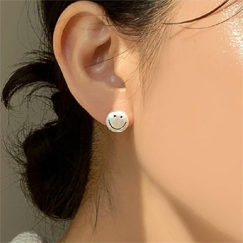 F廠-韓國韓版925純銀耳釘笑臉拉絲耳釘簡約時尚氣質ins風耳環「C1182」25.06-3