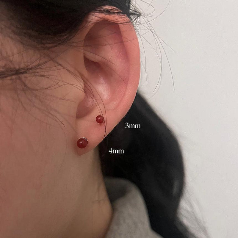 F廠-韓國韓版925純銀耳針紅瑪瑙耳釘女簡約時尚ins風耳釘耳飾「C1111」24.05-3