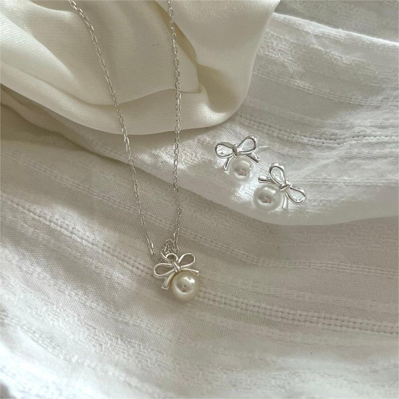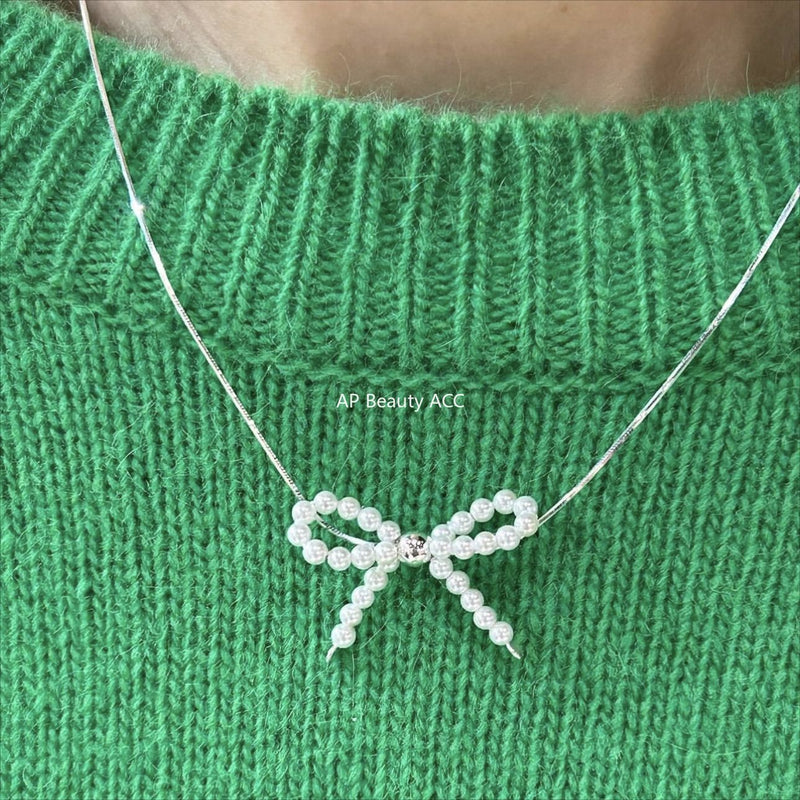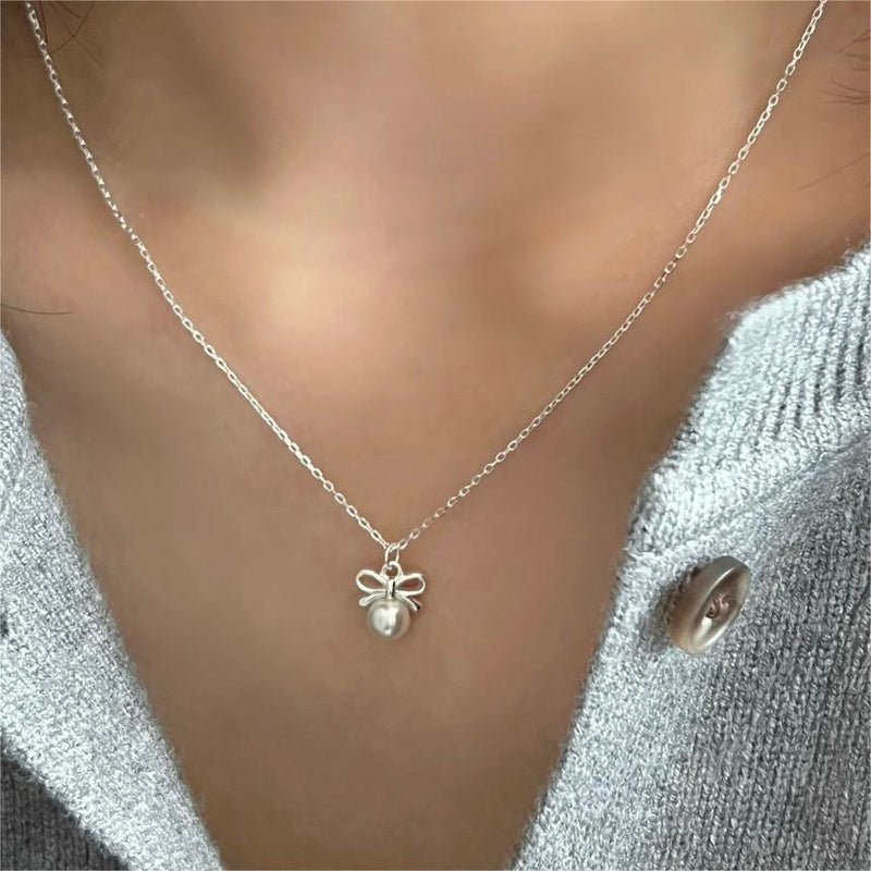 F廠-韓國韓版925純銀蝴蝶結珍珠項鍊簡約氣質ins網紅小紅書「B1280」24.12-2