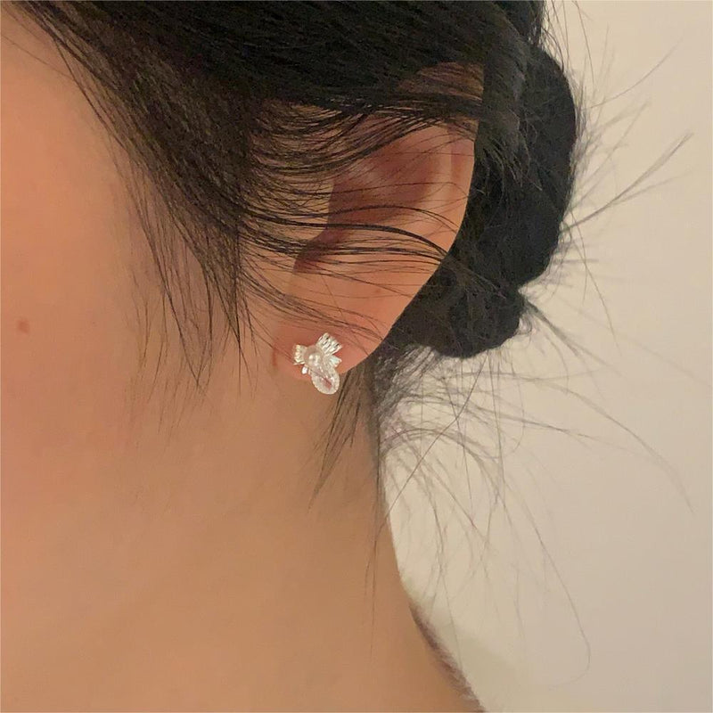 F廠-韓國韓版925純銀蝴蝶結珍珠耳釘簡約氣質百搭ins風耳飾「C1408」25.09-1