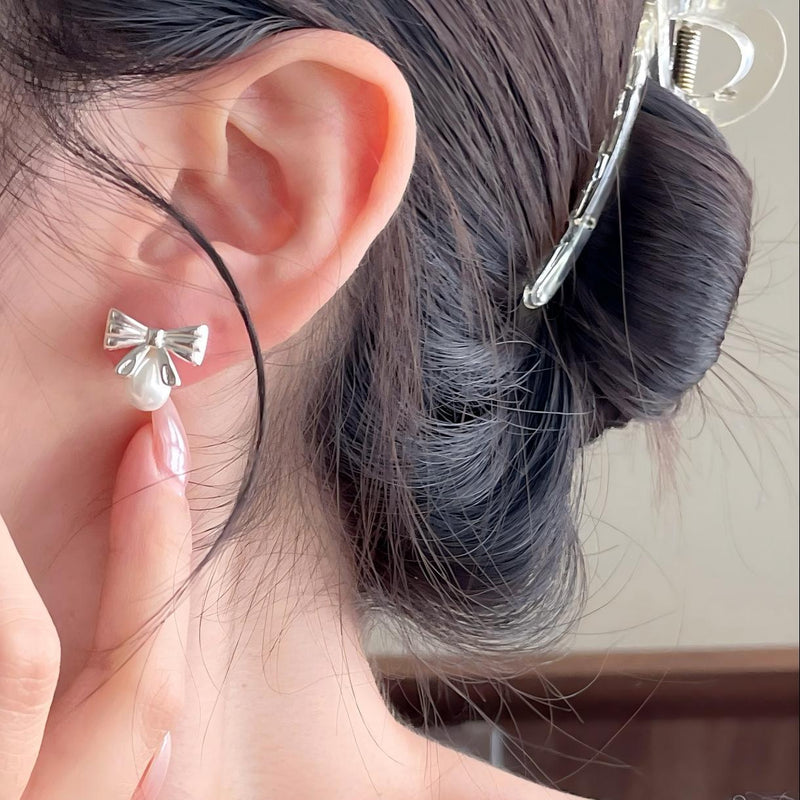 F廠-韓國韓版925純銀蝴蝶結珍珠耳釘簡約氣質百搭ins風耳飾「C1288」25.04-4