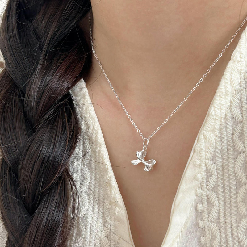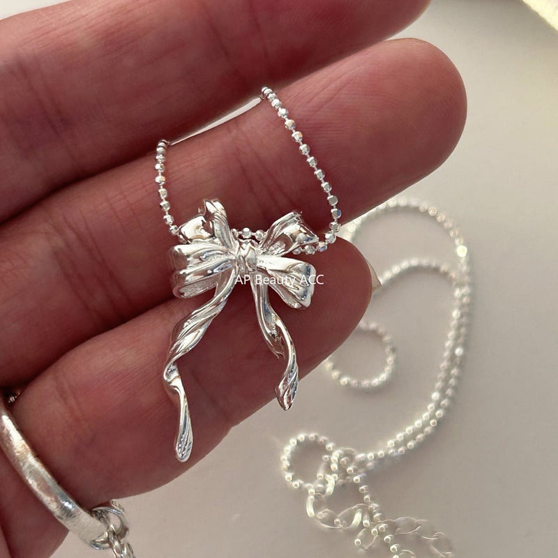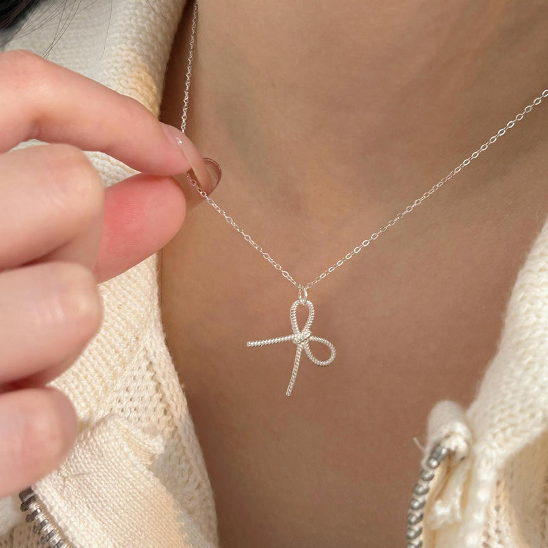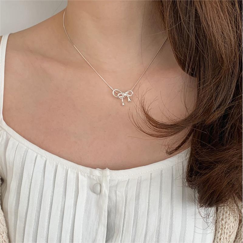 F廠-韓國韓版925純銀蝴蝶結項鍊簡約氣質ins百搭小紅書項鍊「B1302」24.07-1