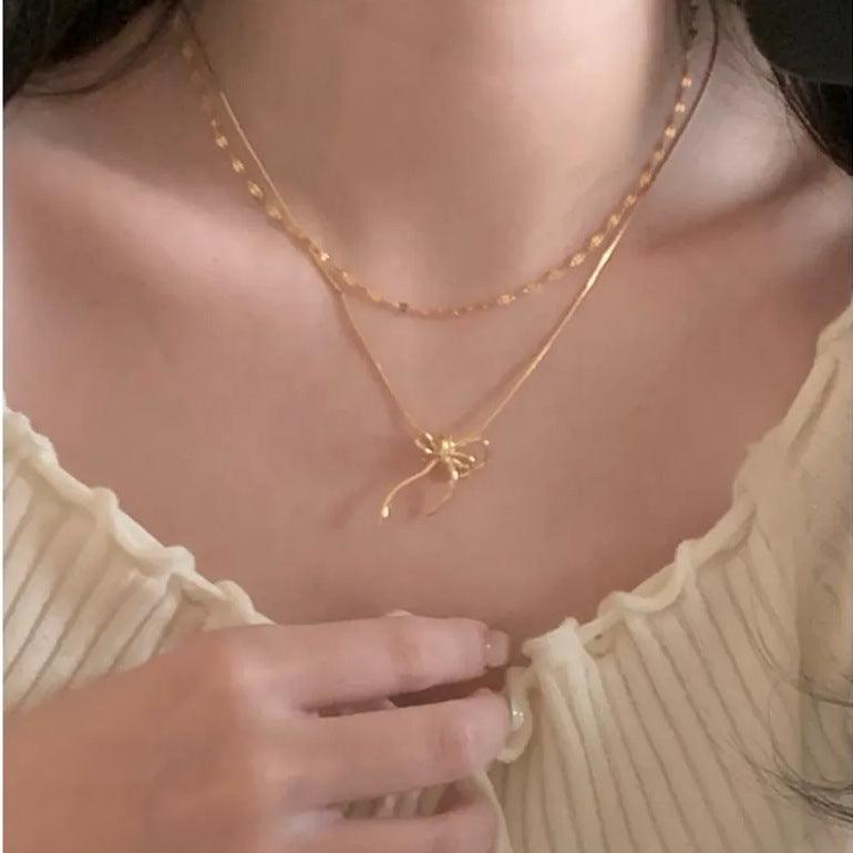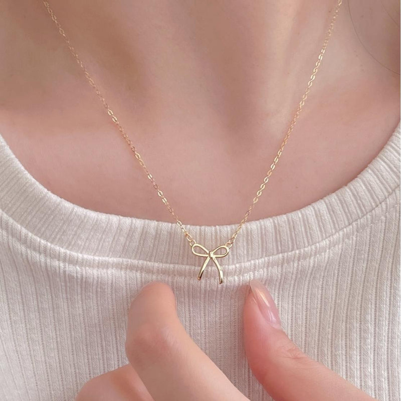 F廠-韓國韓版925純銀蝴蝶結項鍊簡約氣質ins百搭小紅書項鍊「B1316」25.06-4