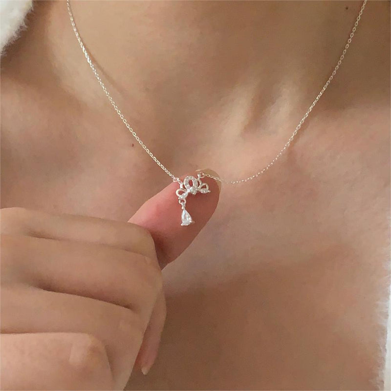 F廠-韓國韓版925純銀鋯石蝴蝶結項鍊簡約氣質ins小紅書項鍊「B1365」25.08-1