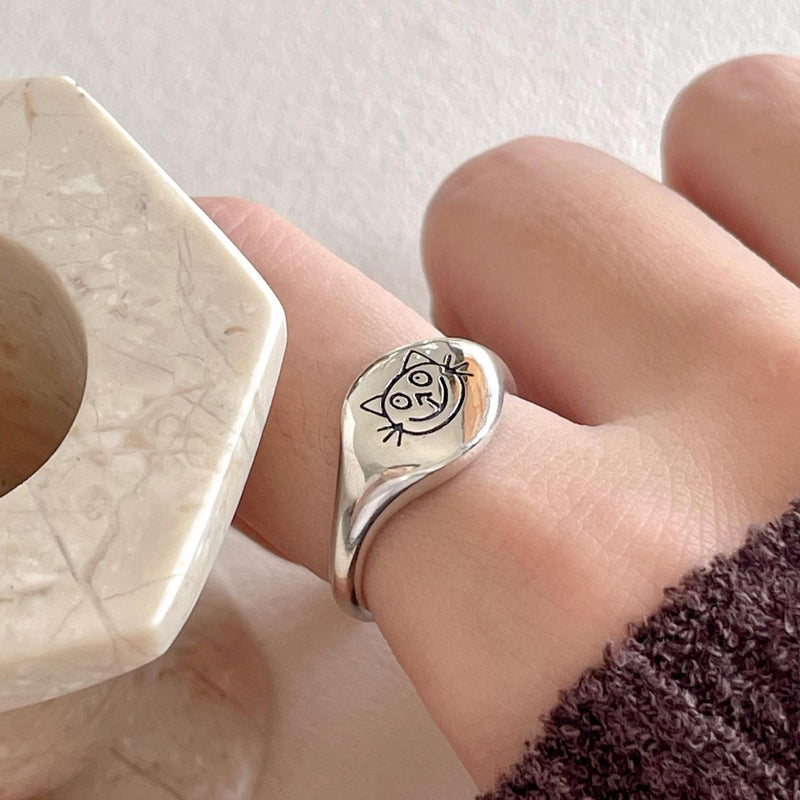 F廠-韓國韓版小紅書ins簡約S925純銀小貓戒指女戒指素銀幾何戒「J2094」25.02-3