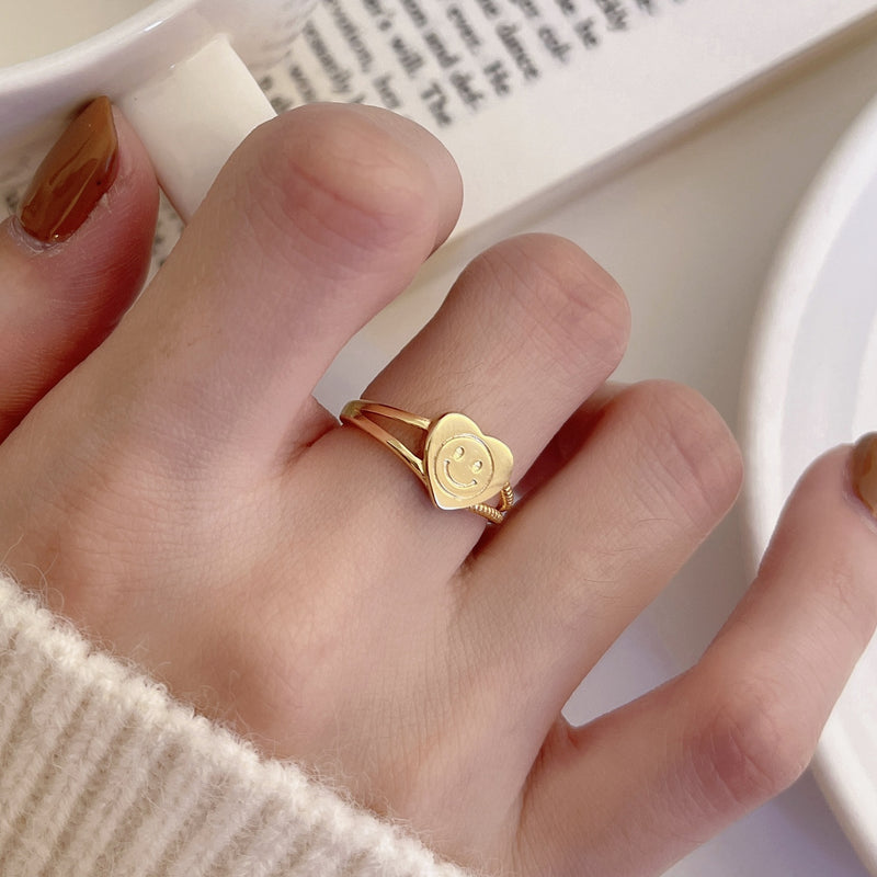 F廠-韓國韓版東大門925純銀小紅書戒指簡約氣質愛心笑臉戒指「J1720」25.07-2