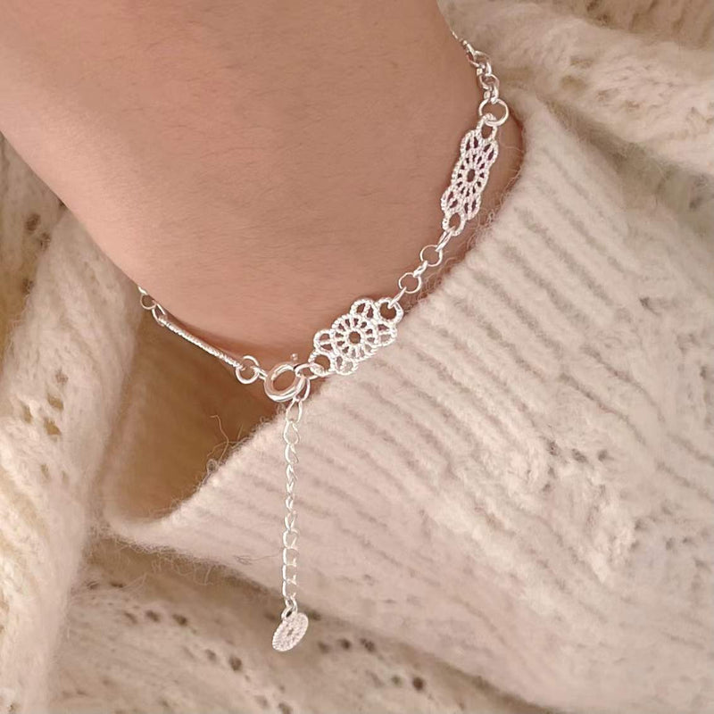 F廠-韓國韓版時尚潮流 S925純銀銀制蕾絲手鍊手飾古典優雅氣質銀飾品「A159」25.04-4
