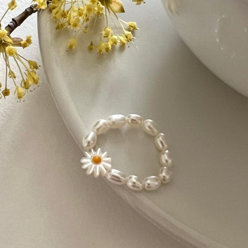 F廠-韓國韓版法式風韓版飾品貝殼花珍珠戒指飾時尚珍珠雛菊戒指「J1770」25.06-2