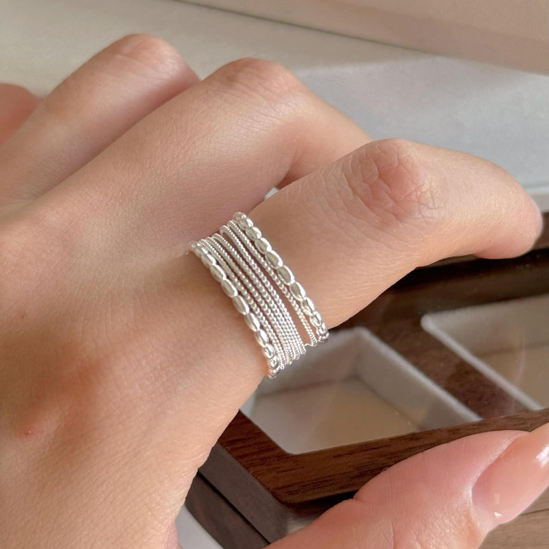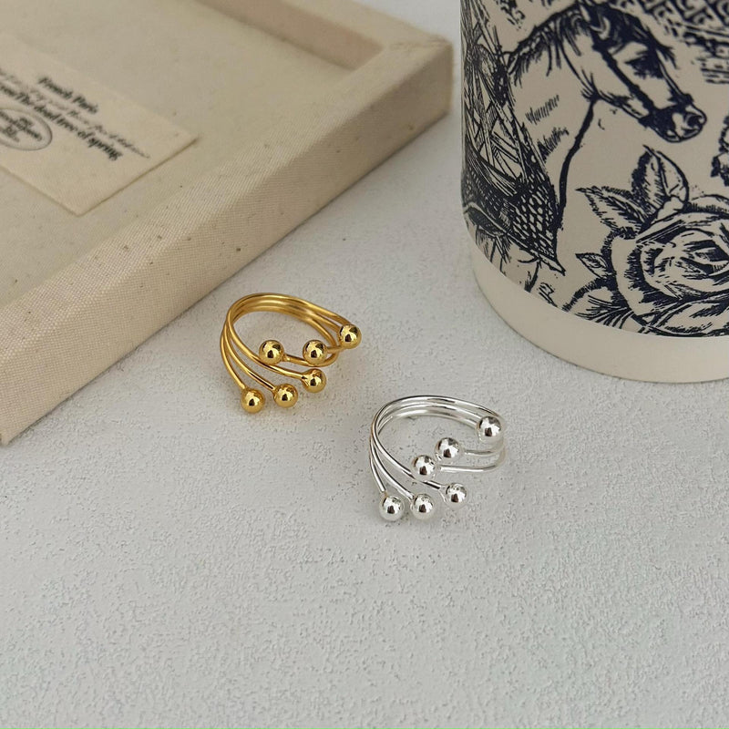 F廠-韓版小紅書ins簡約S925純銀六珠戒指設計感個性戒指圓環戒「J170」24.05-1
