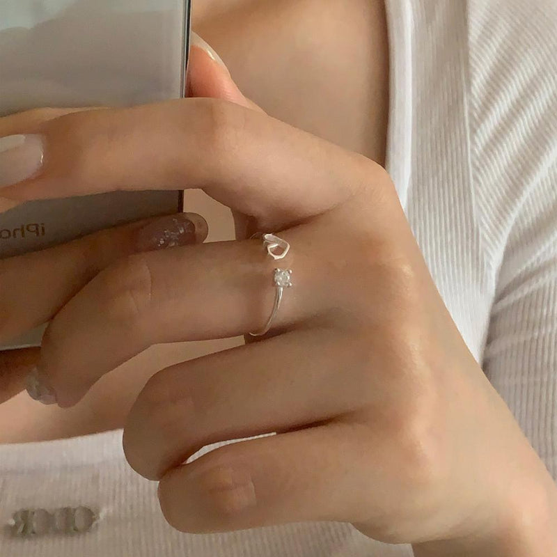 F廠-韓版小紅書ins簡約S925純銀愛心鋯石戒指設計感個性戒指「J2047」24.09-3