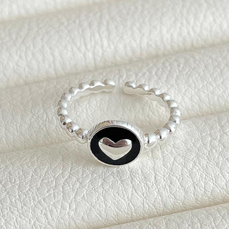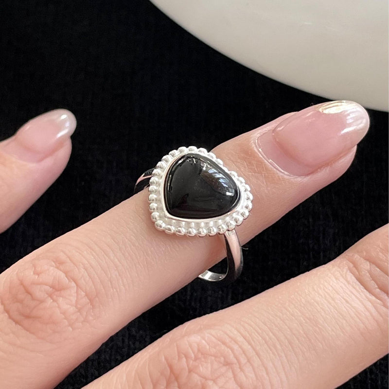 F廠-韓版小紅書ins簡約S925純銀愛心黑瑪瑙戒指設計感個性戒指「J2091」25.02-2