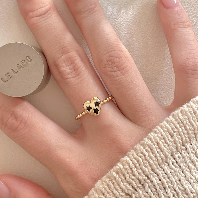 F廠-韓版小紅書ins簡約S925純銀愛心滴膠星星戒指設計感個性戒「J2078」25.02-2