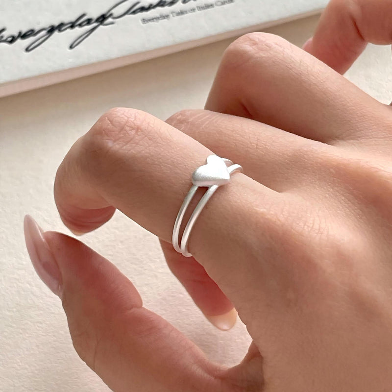 F廠-韓版小紅書ins簡約S925純銀愛心磨砂戒指設計感個性戒指「J2137」25.09-1