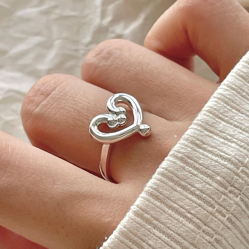 F廠-韓版小紅書ins簡約S925純銀愛心戒指設計感INS風個性戒指「J2063」24.11-1