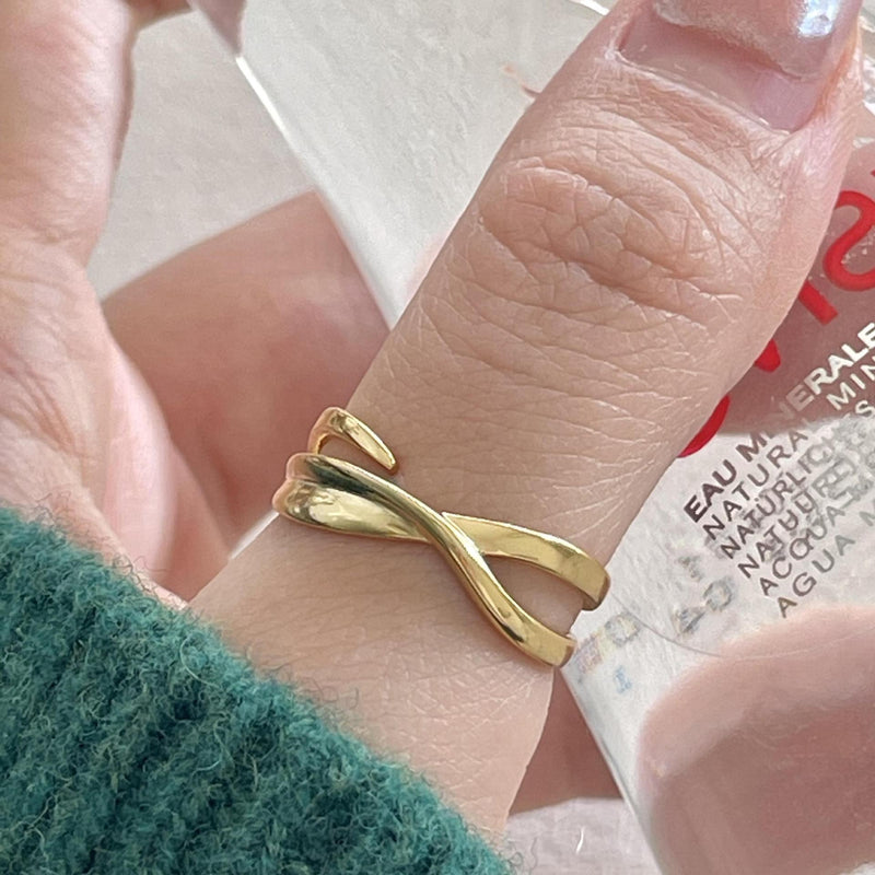 F廠-韓版小紅書ins簡約S925純銀線條交叉戒指設計感個性戒指「J2099」25.03-3