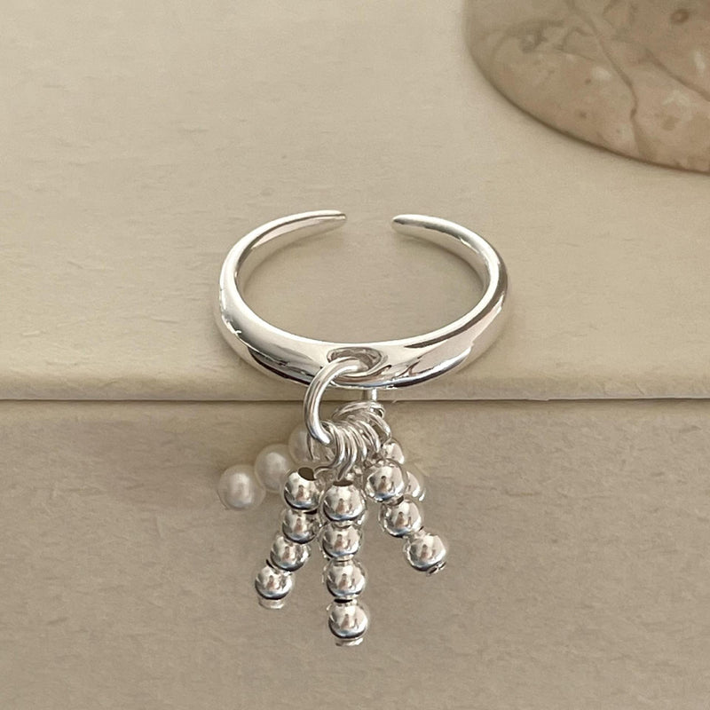 F廠-韓版小紅書ins簡約S925純銀流蘇珠珠戒指設計感個性INS戒指「J2076」25.03-1