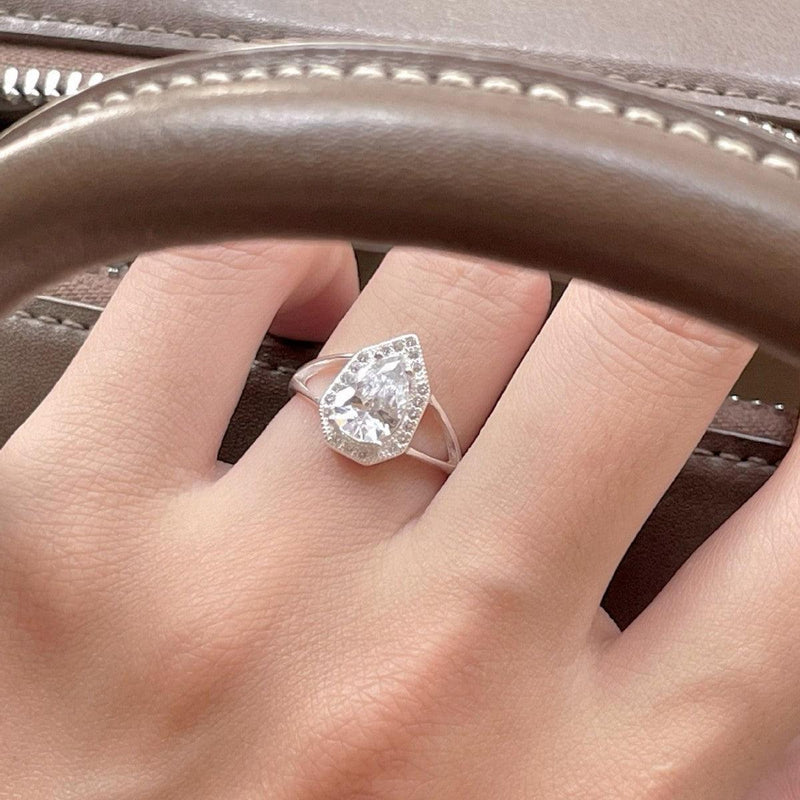 F廠-韓版小紅書ins簡約S925純銀水滴鋯石戒指設計感個性戒指「J2127」25.07-3