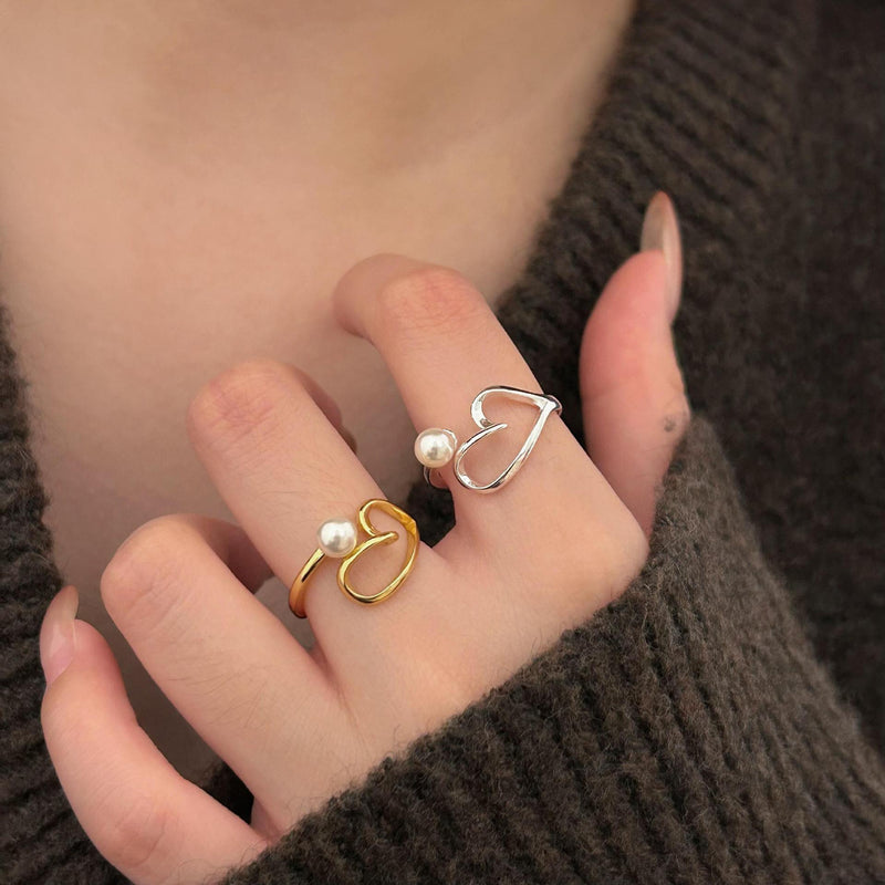F廠-韓版小紅書ins簡約S925純銀珍珠愛心戒指設計感個性戒指「J2013」24.05-4
