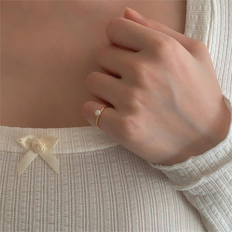 F廠-韓版小紅書ins簡約S925純銀珍珠戒指設計感個性戒指圓環戒「J2022」24.06-2