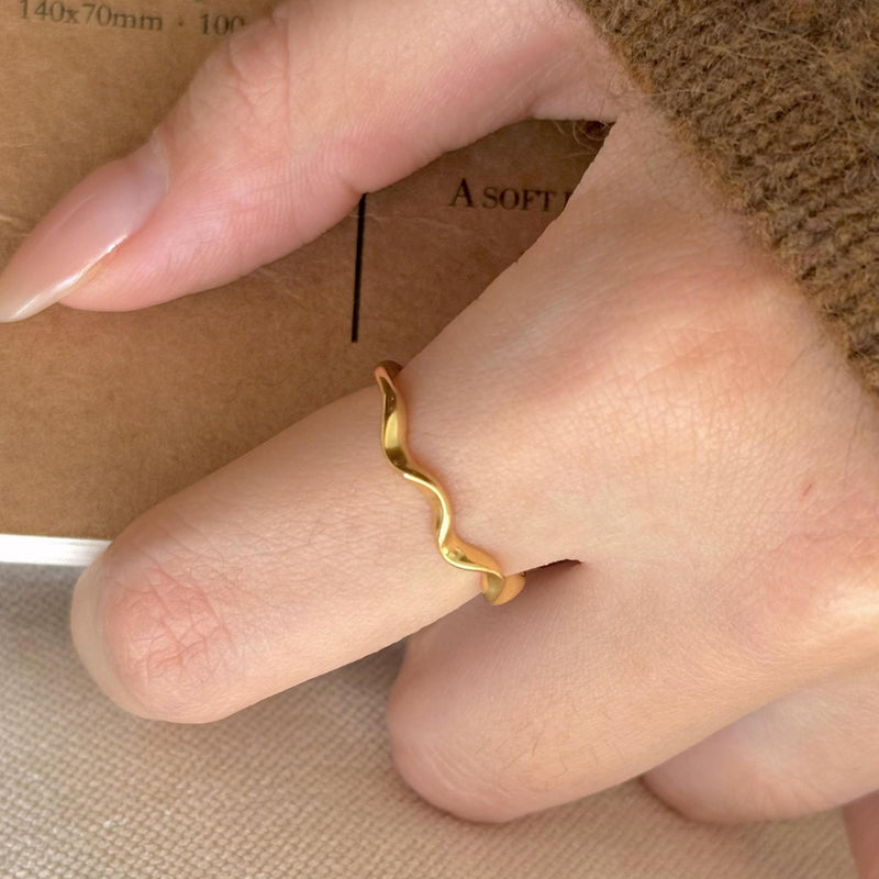 F廠-韓版小紅書ins簡約S925純銀波浪戒指設計感個性戒指圓環戒「J2071」24.12-4