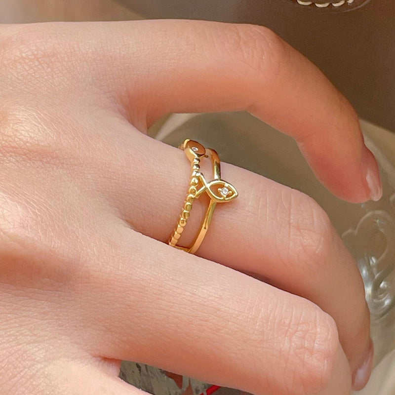 F廠-韓版小紅書ins簡約S925純銀線條小魚戒指設計感個性戒指「J2060」24.10-3