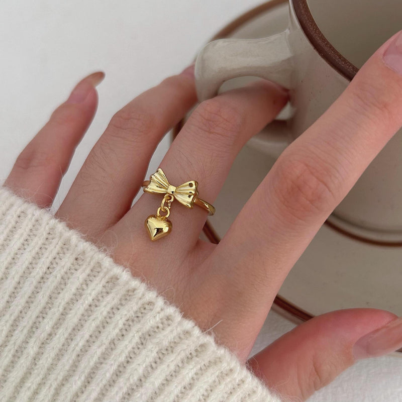 F廠-韓版小紅書ins簡約S925純銀蝴蝶結愛心戒指設計感個性戒指「J2011」24.05-4