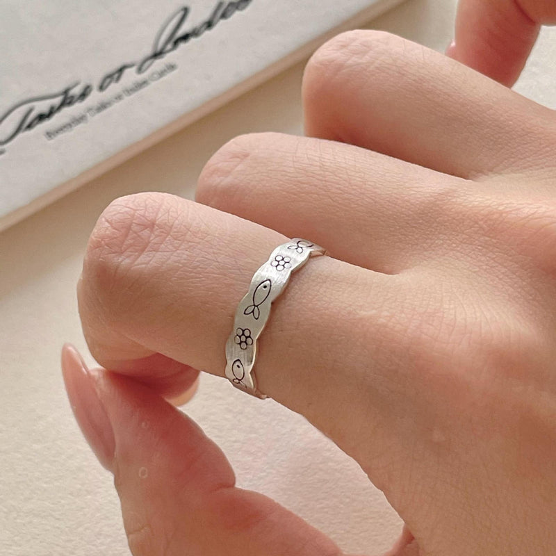 F廠-韓版小紅書ins簡約S925純銀花朵小魚復古戒指設計感戒指「J2121」25.07-2