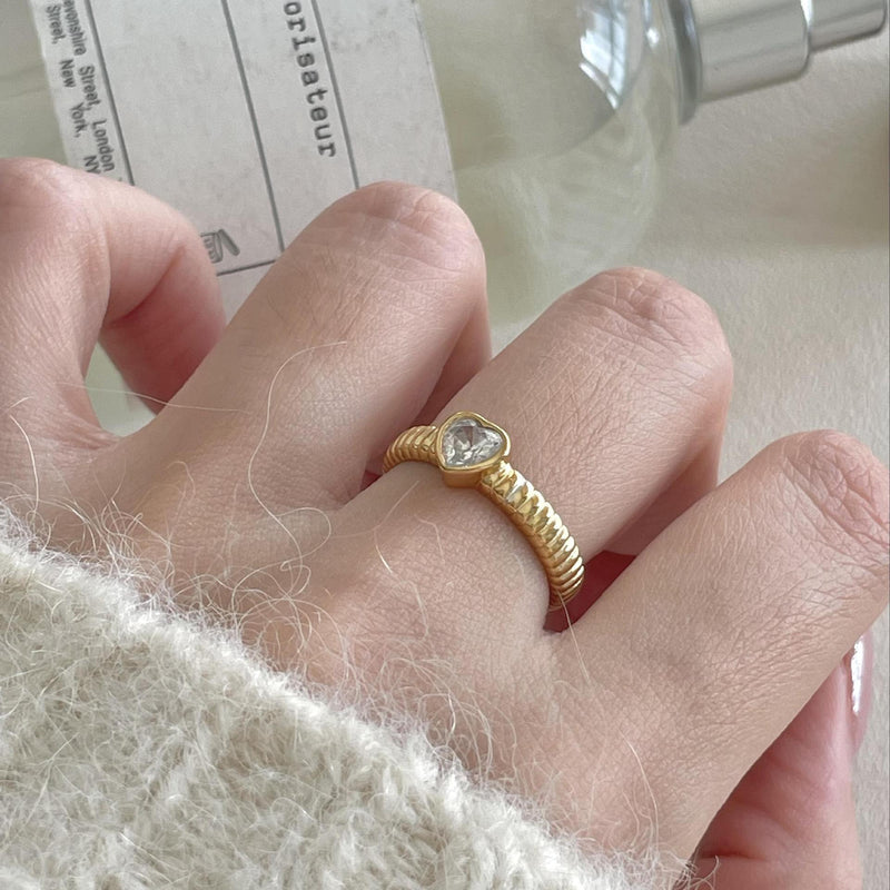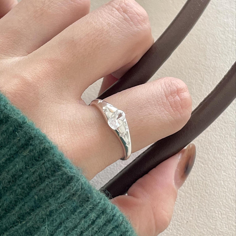 F廠-韓版小紅書ins簡約S925純銀鋯石愛心戒指設計感個性戒指「J2098」25.03-3