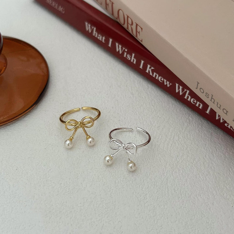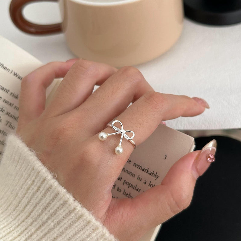 F廠-韓版小紅書ins簡約S925純銀蝴蝶結珍珠戒指設計感個性戒指「J2025」24.06-3