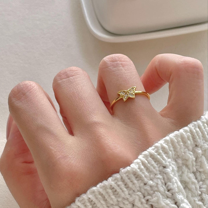 F廠-韓版小紅書ins簡約S925純銀鋯石蝴蝶戒指設計感個性戒指「J2129」25.07-1