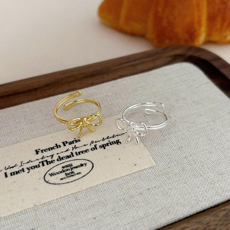 F廠-韓版小紅書ins簡約S925純銀蝴蝶結戒指設計感個性戒指圓環「J1981」24.07-3
