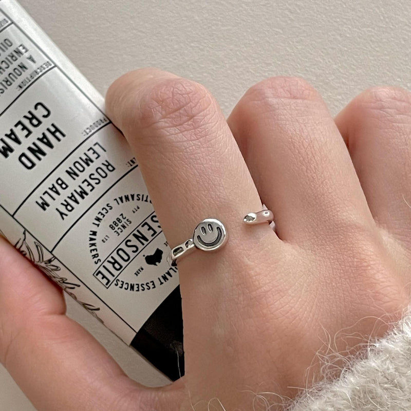 F廠-韓版韓版925純銀復古笑臉戒指簡約小紅書INS時尚開口戒「J2117」25.05-1