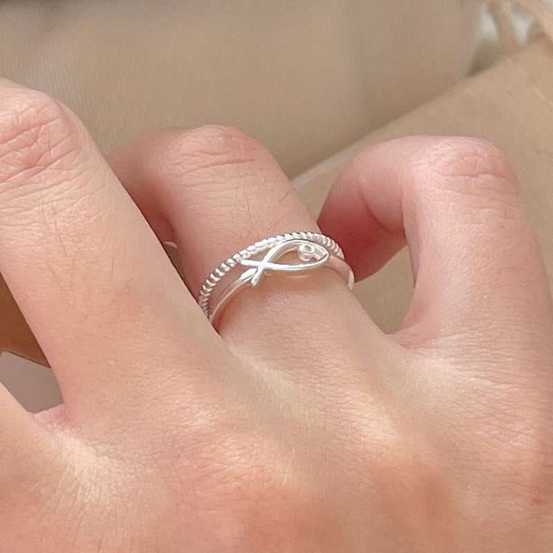 F廠-韓版韓版925純銀小魚戒指簡約小紅書INS時尚開口戒指「J2040」24.07-1