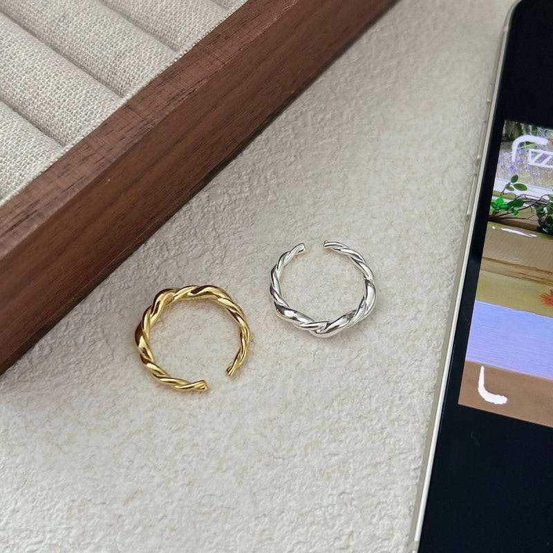 F廠-韓版韓版925純銀扭線戒指簡約小紅書INS時尚開口戒指「J2015」24.06-1