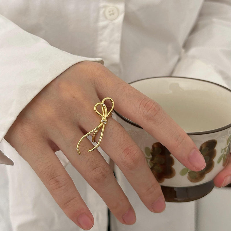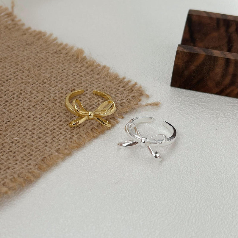 F廠-韓版韓版925純銀蝴蝶結戒指簡約小紅書INS時尚開口戒指「J2030」24.06-4