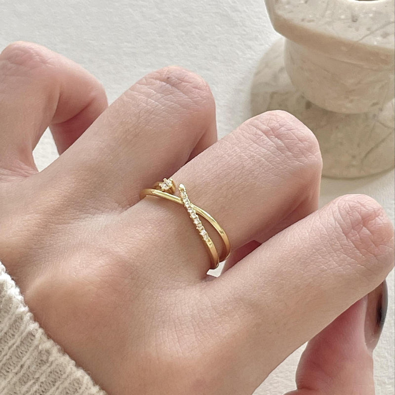 F廠-韓版韓版925純銀鋯石交叉戒指簡約小紅書INS時尚開口戒指「J2108」25.04-3