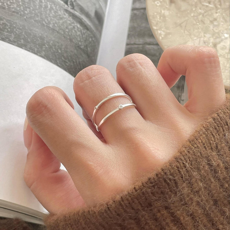F廠-韓版韓版925純銀鋯石戒指簡約小紅書INS時尚開口戒指「J2083」25.01-3