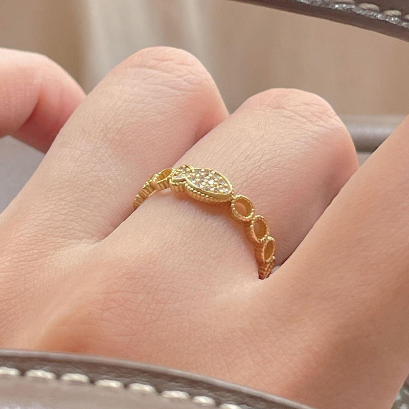 F廠-韓版韓版925純銀鋯石小魚戒指簡約小紅書INS時尚開口戒「J2056」24.10-2