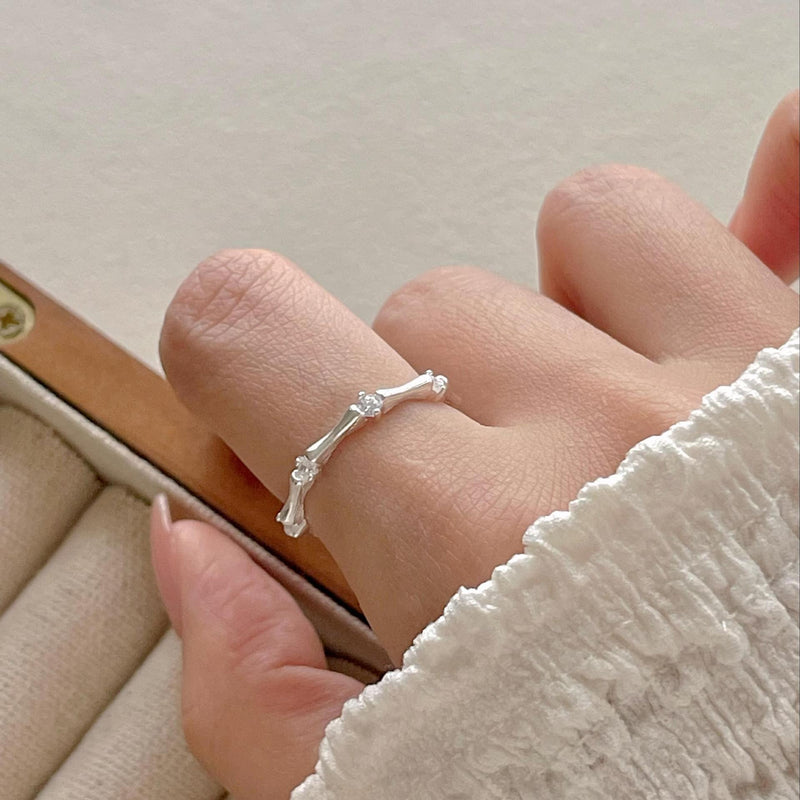 F廠-韓版韓版925純銀鋯石竹節戒指簡約小紅書INS時尚開口戒指「J2126」25.07-2