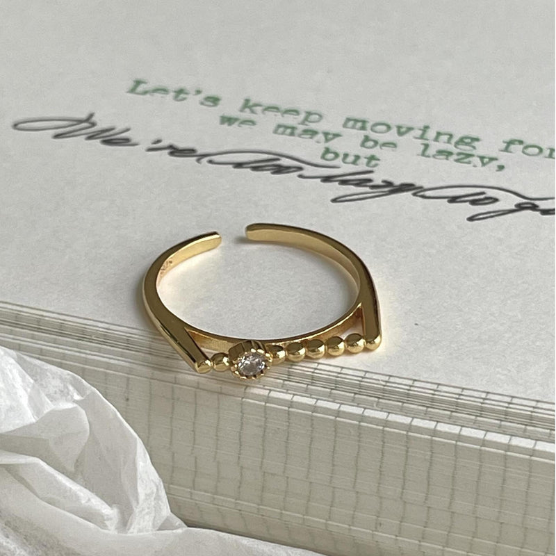 F廠-韓版韓版925純銀鋯石圓珠戒指簡約小紅書INS時尚開口戒「J2132」25.07-4