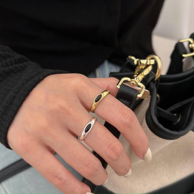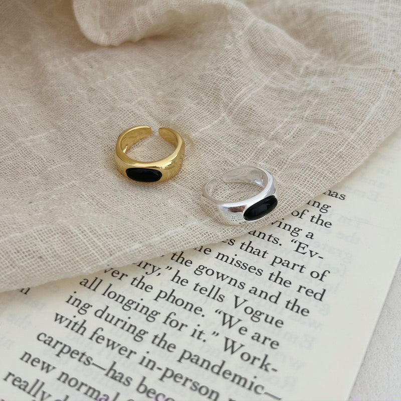 F廠-韓版韓版925純銀黑瑪瑙橢圓戒指簡約小紅書INS時尚開口戒「J1995」24.05-1