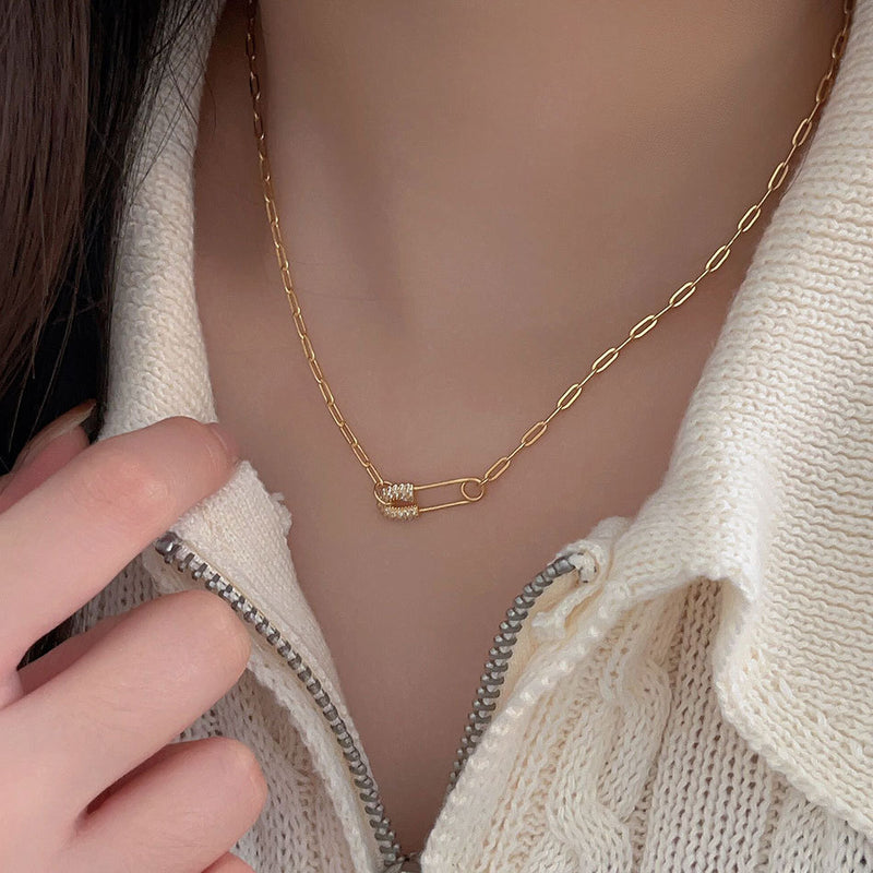 F廠-韓版飾品 925純銀金色別針鏈條項鍊 簡約風格女款小眾網紅項鍊「B847」25.07-4