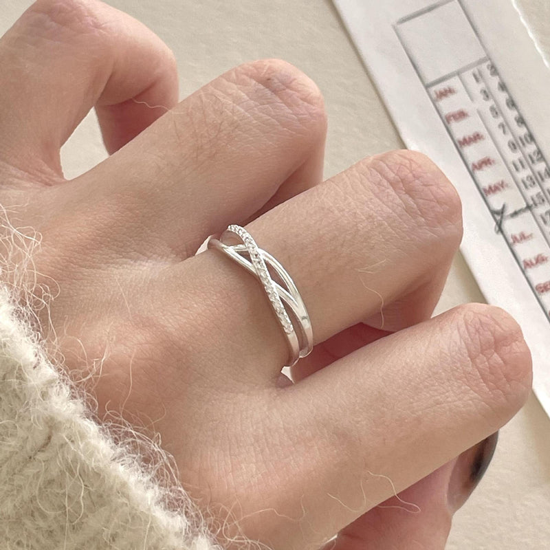 F廠-韓版韓版925純銀鋯石線條戒指簡約小紅書INS時尚開口戒「J2109」25.04-3