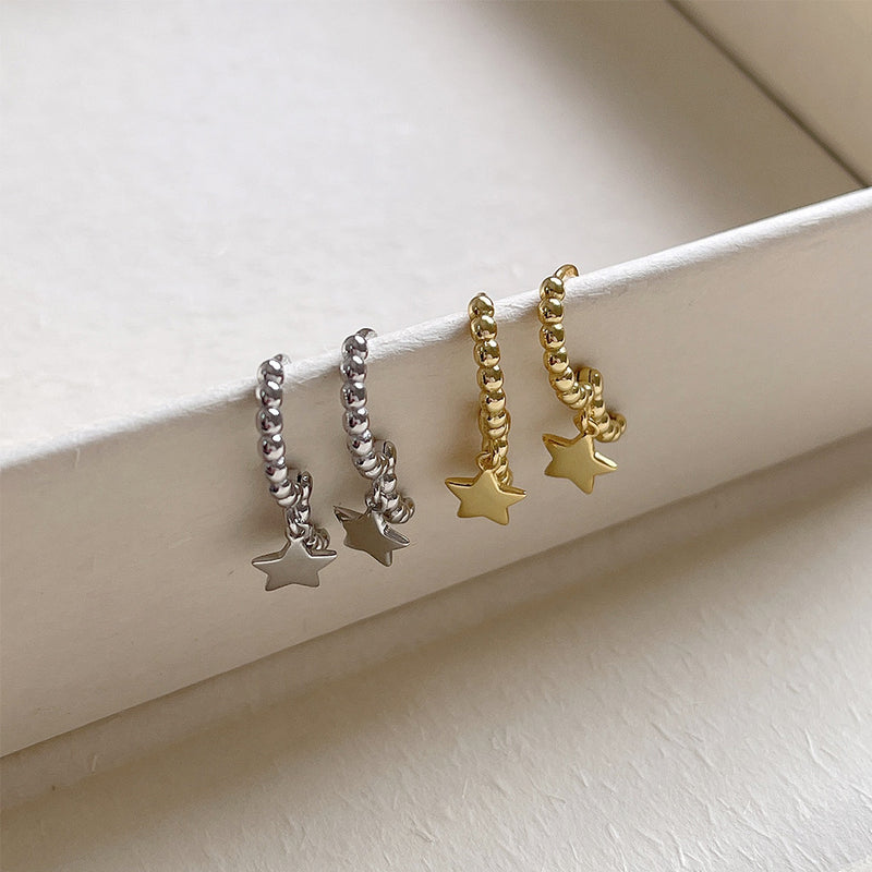 F廠-韓版韓風S925純銀INS極簡耳環 圓珠星星百搭耳扣銀耳釘女「C778」25.05-5