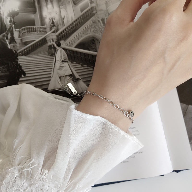 F廠-黑鳳凰珠寶 韓國韓版S925純銀簡約笑臉流蘇手鍊手飾閨蜜情侶手鍊「A189」25.06-2