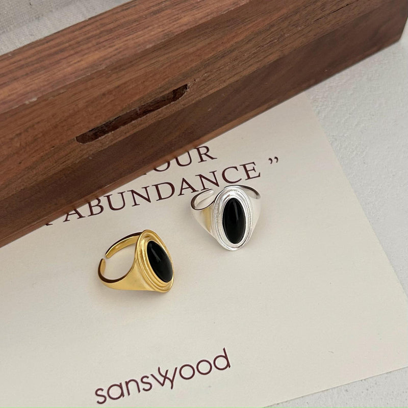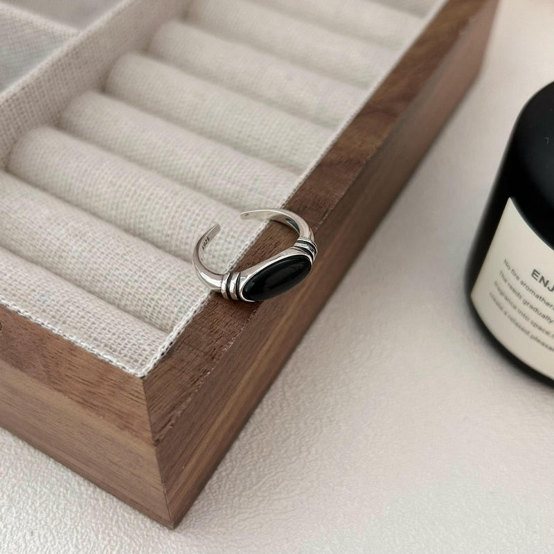 F廠-韓版飾品925純銀黑瑪瑙戒指個性氣質百搭小紅書INS戒「J1957」24.01-4