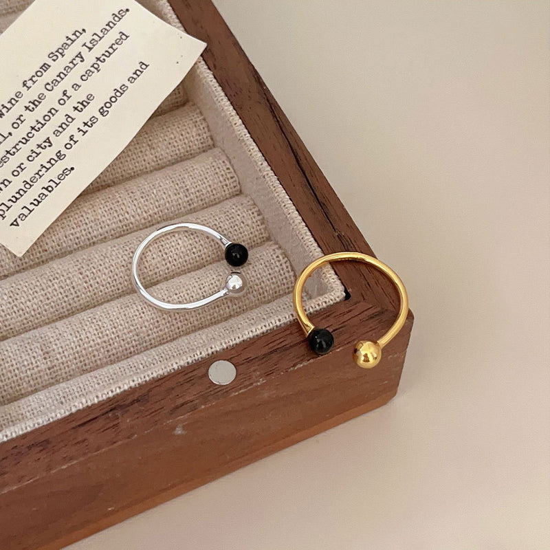 F廠-韓版飾品925純銀黑瑪瑙圓珠戒指個性氣質百搭小紅書INS戒「J1948」24.01-2