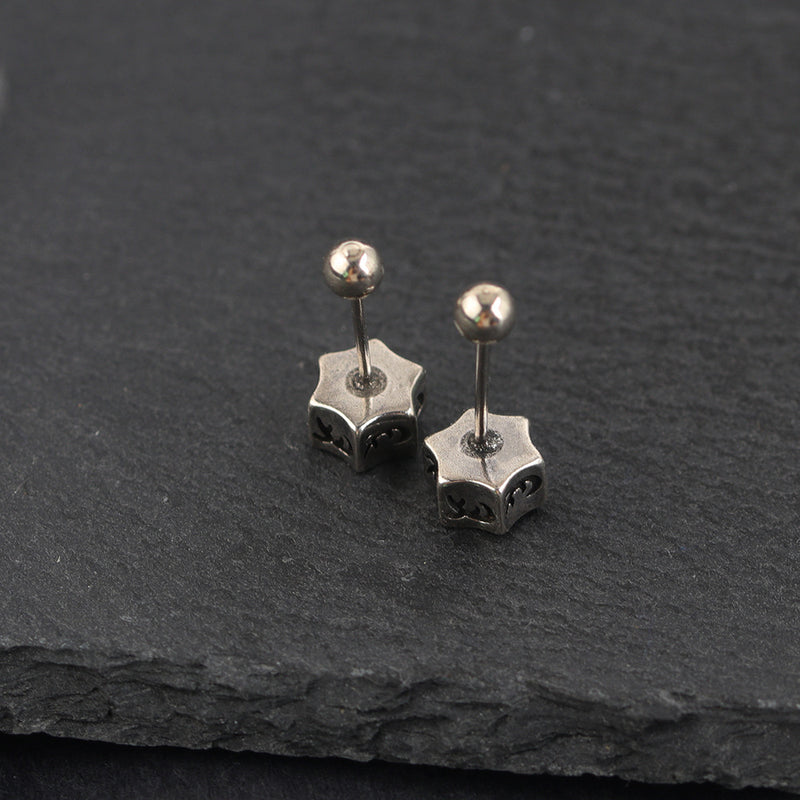 G廠-六芒星彩鑽螺絲耳釘男潮個性創意感幻彩耳環復古冷淡風男士耳飾「ER848」25.09-3
